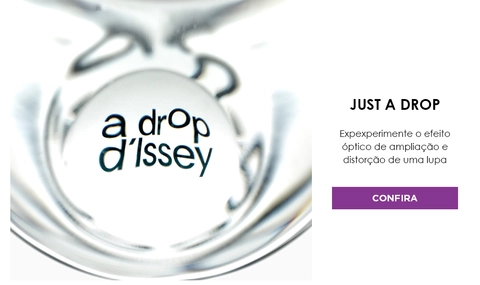 A Drop d’Issey é um perfume Issey Miyake feminino floral frutal. Traz uma fragrância que é um verdadeiro convite para ver o mundo de um jeito diferente. O Perfume A Drop d’Issey, de Issey Miyake, combina notas que criam um aroma que ajuda descobrir a beleza oculta existente na Natureza. Seu frasco possui um formato arredondado, basta olhar através do vidro para ter um efeito de lupa. Desse modo, você tem a possibilidade de enxergar as coisas de uma nova perspectiva.