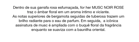 Musc Noir Rose é um perfume de Narciso Rodriguez que surge em uma fragrância sensual, expressando um clima de intimidade e sutileza cativante.