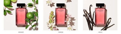 Narciso Rodriguez é uma grife de moda marcada pelo contraste do clássico com o moderno, reconhecida como referência mundial de elegância e sofisticação. Além das peças de vestuário, a marca conta com sua própria perfumaria, que destaca o luxo atemporal, utilizando três bases para suas fragrâncias: precisão, elegância e sobriedade. Os perfumes Narciso Rodriguez possuem o Almíscar como referência olfativa, o que sugere um toque atraente e muito sensual.